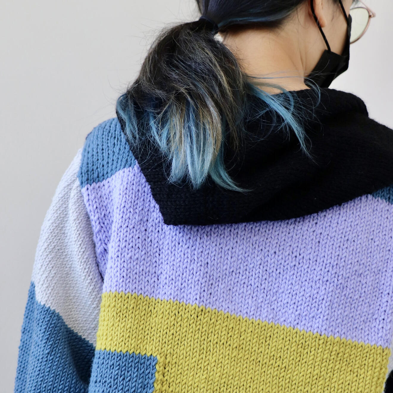 The first ever knit gang project (which I didn't know I was going to knit more clothes back then!) became such a beloved piece of craftwork in my heart, I decided to request my friend to wear it and do a mini photoshoot with it.It was a bit clumsy setting it up - the only wall that looked decent and easily accessible for a blank background photoshoot happened to be in my cramped-as-hell bedroom in my apartment. I barely had any space to work with; my bed was so close to that one wall, I had to make sure none of the shots captured my bed when I used my DSLR camera to take the pictures. Not only that, but that gave not so much freedom in terms of actions for my friend in the pictures unfortunately.Somehow, despite all that, the photos turned out okay! It may be amateur photography shots, but I was so, so incredibly proud that day when I reviewed the pictures.I think it was then that I decided to try and make more garments for my friends, purely for the love of the game.